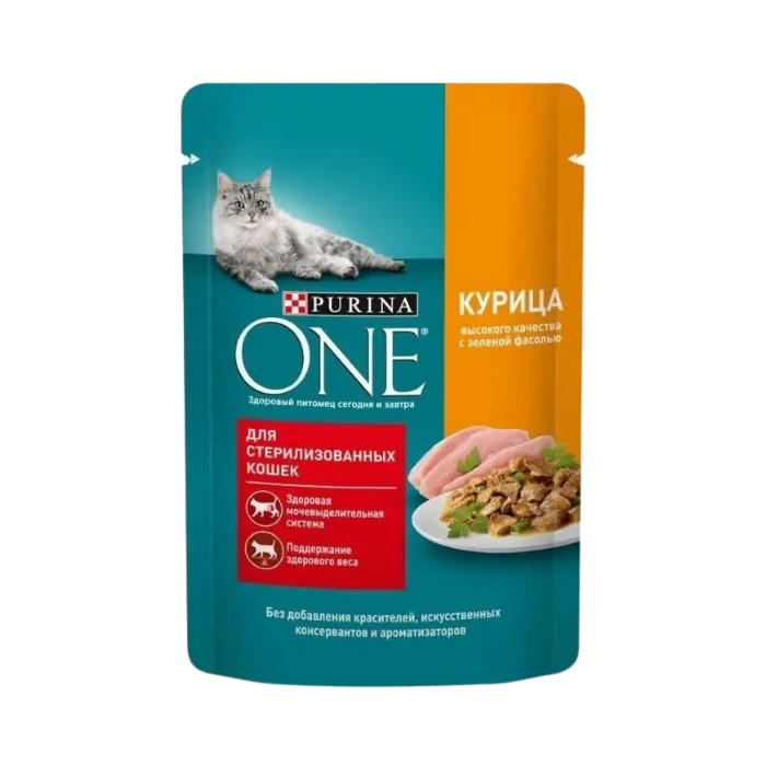Влажный корм для кошек PURINA ONE Курица Зеленая фасоль Sterilised
